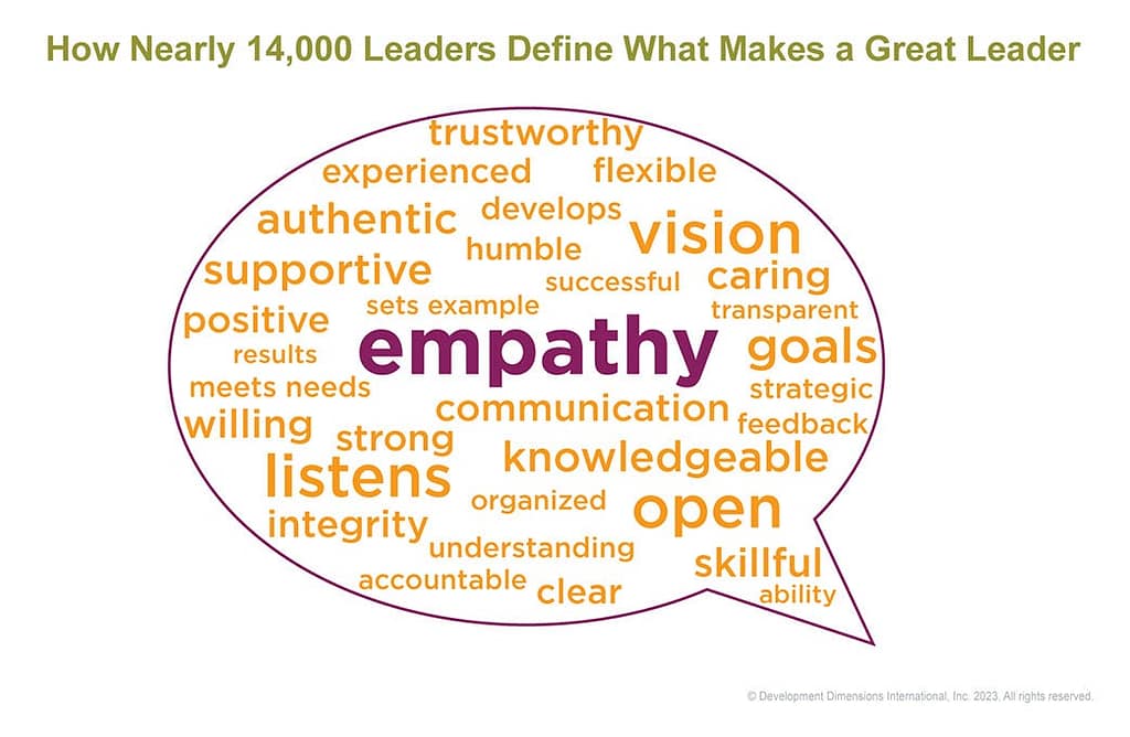 Volgens bijna 14.000 leiders wereldwijd bepalen de woorden hieronder wat een goede leider maakt. Het mooie aan deze elementen is dat ze vooral met houding en mindset te maken hebben. En niet per se met kennis.